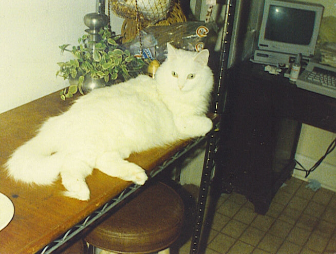 I can put it into words now, It’s been a month since Sabrina passed. My beautiful star-white angora cat was 23 years old. She could barely walk and refused food and water toward the end, but life would not let her go. She needed my help and one morning told me so in the only way she could. She stood, looked me in the eye, wet her blanket and lay back down. I picked her up, wrapped